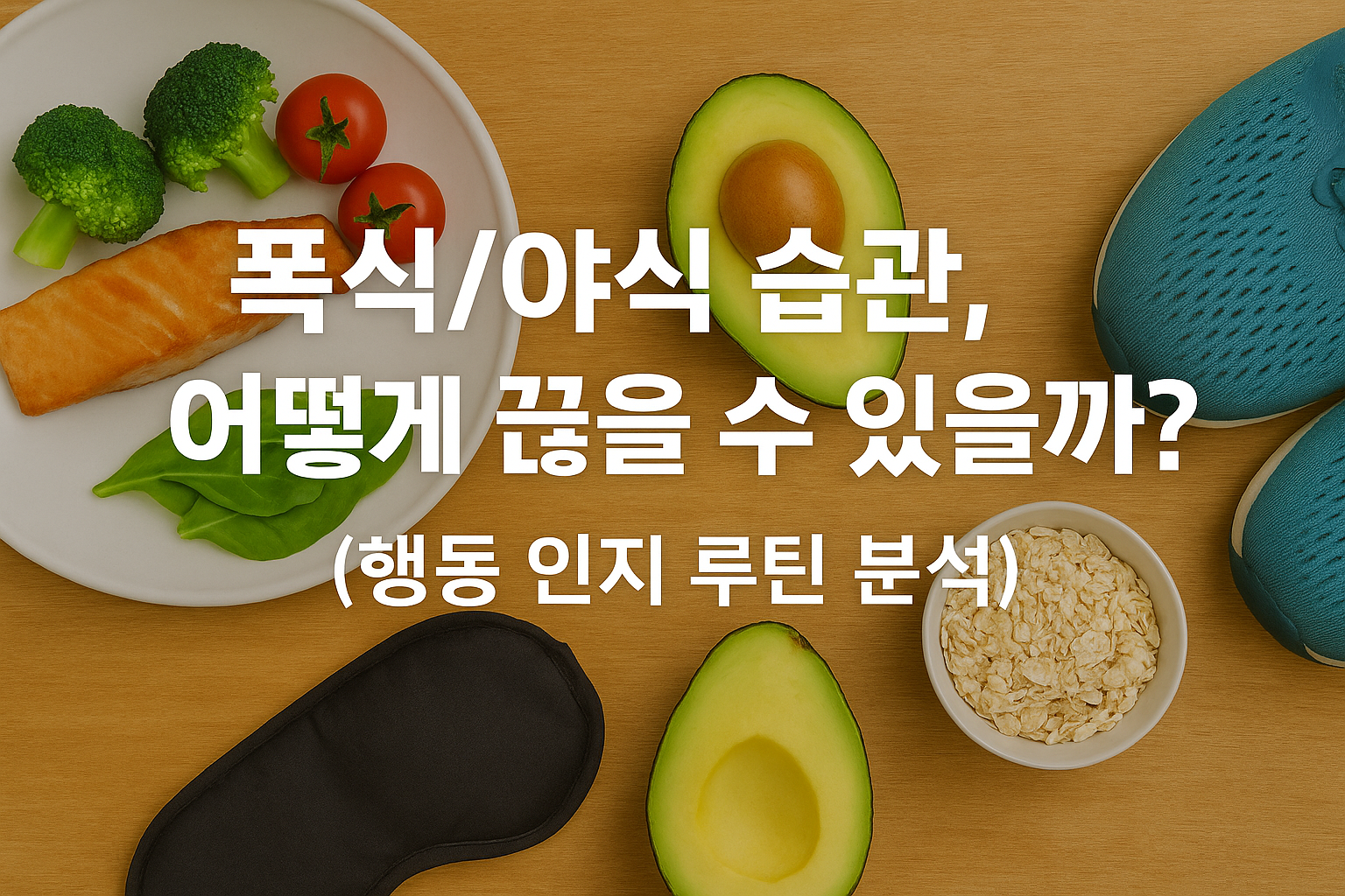 다이어트의 가장 큰 적 중 하나는 반복적인 야식과 폭식 습관입니다. 단순한 의지 문제가 아닌 뇌와 호르몬의 문제일 수 있습니다. 뇌 과학 기반의 행동 루틴 전략으로 해결책을 제시합니다.폭식/야식 습관, 어떻게 끊을 수 있을까?(행동 인지 루틴 분석)1.“알면서도 또 먹었다”는 죄책감다이어트를 결심했지만 밤 10시가 넘으면 손이 가는 배달앱.한 번 시작하면 멈출 수 없는 야식 루틴.다음날 찾아오는 후회와 자책…하지만 이건 당신의 의지 부족 때문이 아닙니다.우리 뇌와 호르몬, 그리고 일상의 리듬이 그렇게 설계되어 있을 수 있습니다.2. 폭식·야식의 생리학적 메커니즘2.1 렙틴-그렐린 시스템의 불균형호르몬역할야식과의 관계그렐린식욕 증가수면 부족 시 과다 분비렙틴포만감 유지비만 상태일수록 민감도 감소🧠 수면이..